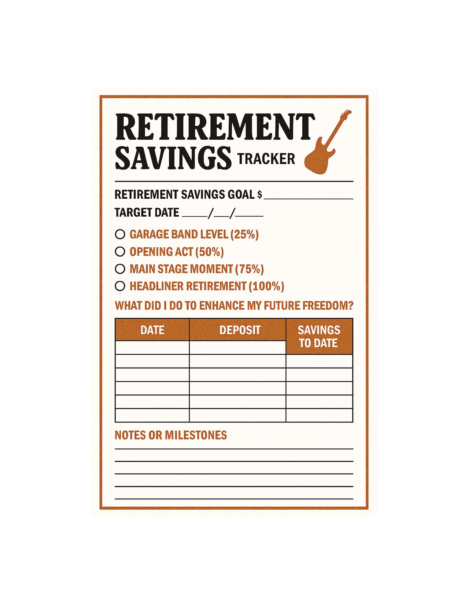 Whether you are just starting your encore or already halfway through the setlist, this planner helps you tune up your finances, amplify your goals, and rock your retirement—your way.
